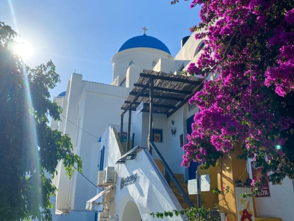 To, co w Grecji nas urzekło, zaraz po jedzeniu, to charakterystyczna dla Cyklad architektura – białe domki w wąskich uliczkach, przyozdobione różowymi kwiatami Bugenwilia i kościoły z niebieskimi kopułami. Grecy są dodatkowo bardzo gościnni, mają bardzo pozytywne podejście do życia, zwane 'kefi’. I to nam baaaaardzo odpowiada!✌️
