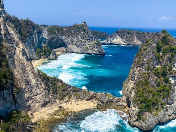 Wyspa Nusa Penida słynie z pięknych i trudno dostępnych plaż, często ukrytych między klifami i skałami. Uchodzą one za najpiękniejsze w całej Indonezji! My się z tym absolutnie zgadzamy 😉 Aby dojść do większości z nich, trzeba się przygotować na nie lada wysiłek – drogi charakteryzują się stromymi zejściami i wymagającymi, niebezpiecznymi podejściami.